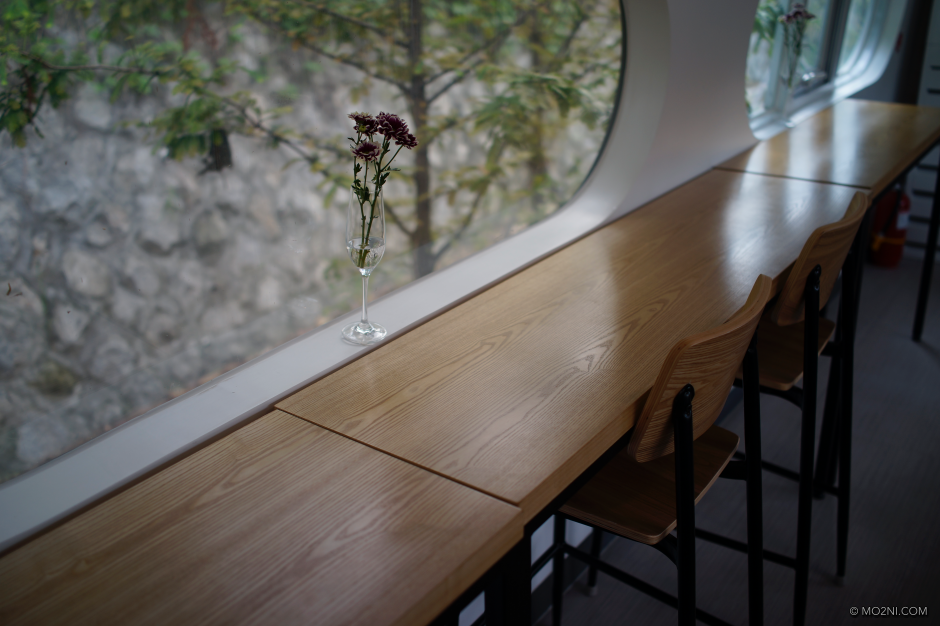 기차 좌석을 의자로 만들어둔 곳도 있네요.