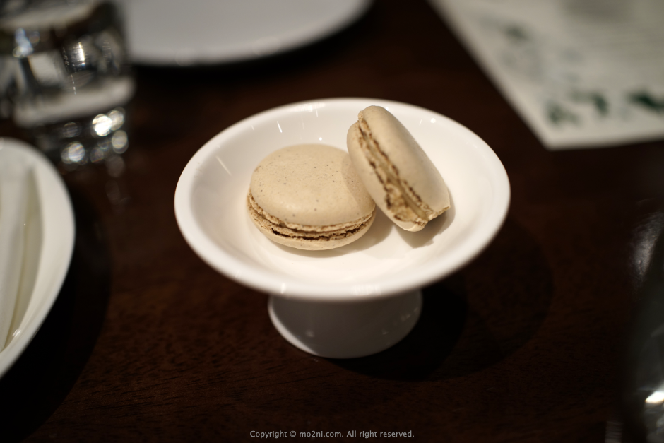 가장 먼저 나온 에피타이저 푸아그라 마카롱 입니다.