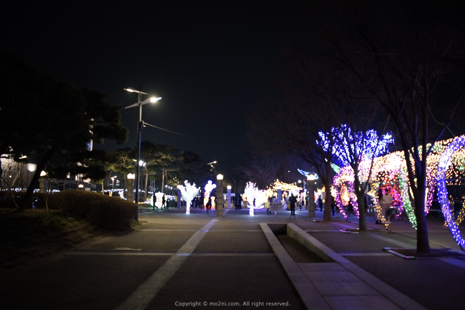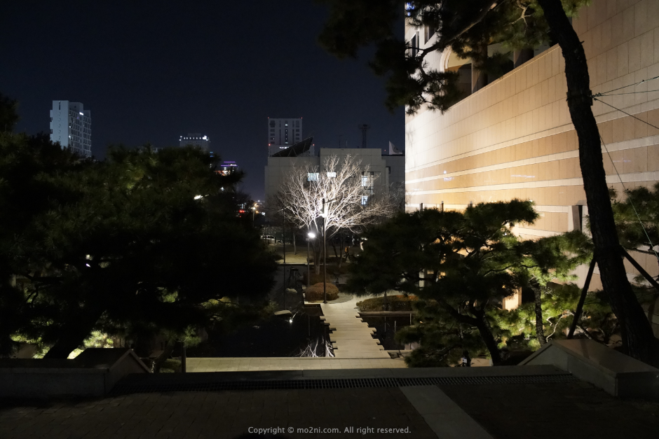 식사를 마치고 배도 꺼트릴 겸 성산아트홀 쪽으로 이동하니 큰 도로변 쪽에 조명을 이쁘게 넣어놨더군요.