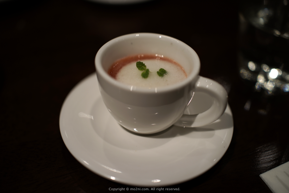 하지만 두번째 애피타이저인 딸기소스에 빠져 있는 석화굴은 굉장히 좋았습니다.