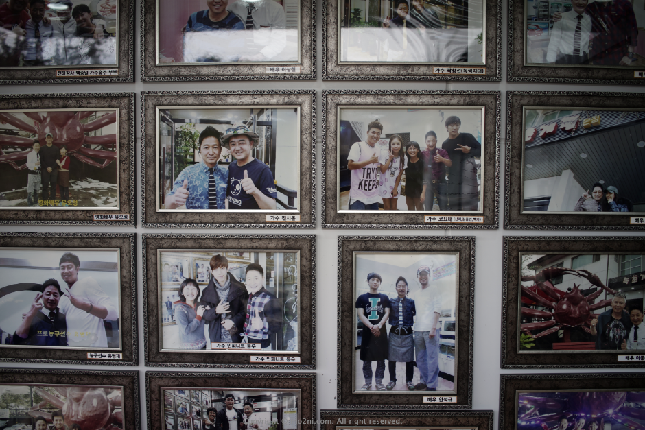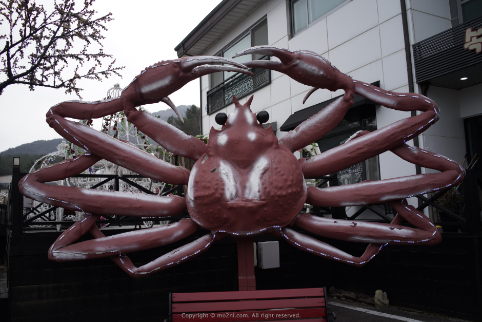 입구에 게가 멋있게 서 있습니다.