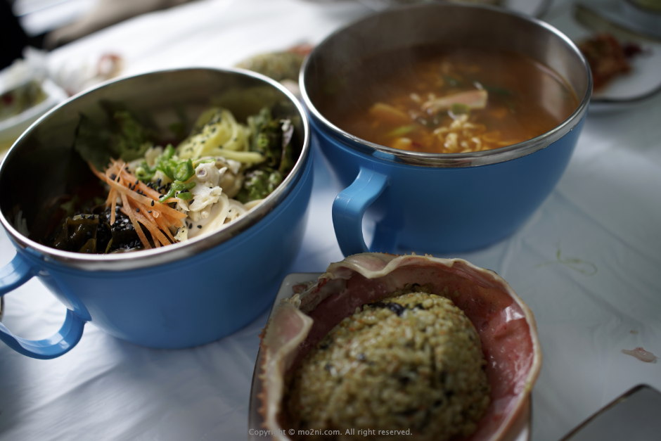 마지막으로는 소라 물회와 대게 라면 그리고 볶음밥이 나옵니다.