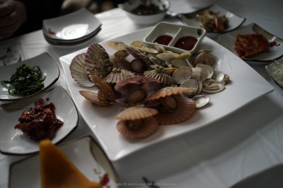 그리고 나오는 조개찜. 가리비 색이 참 이쁘네요. 맛도 좋았습니다.