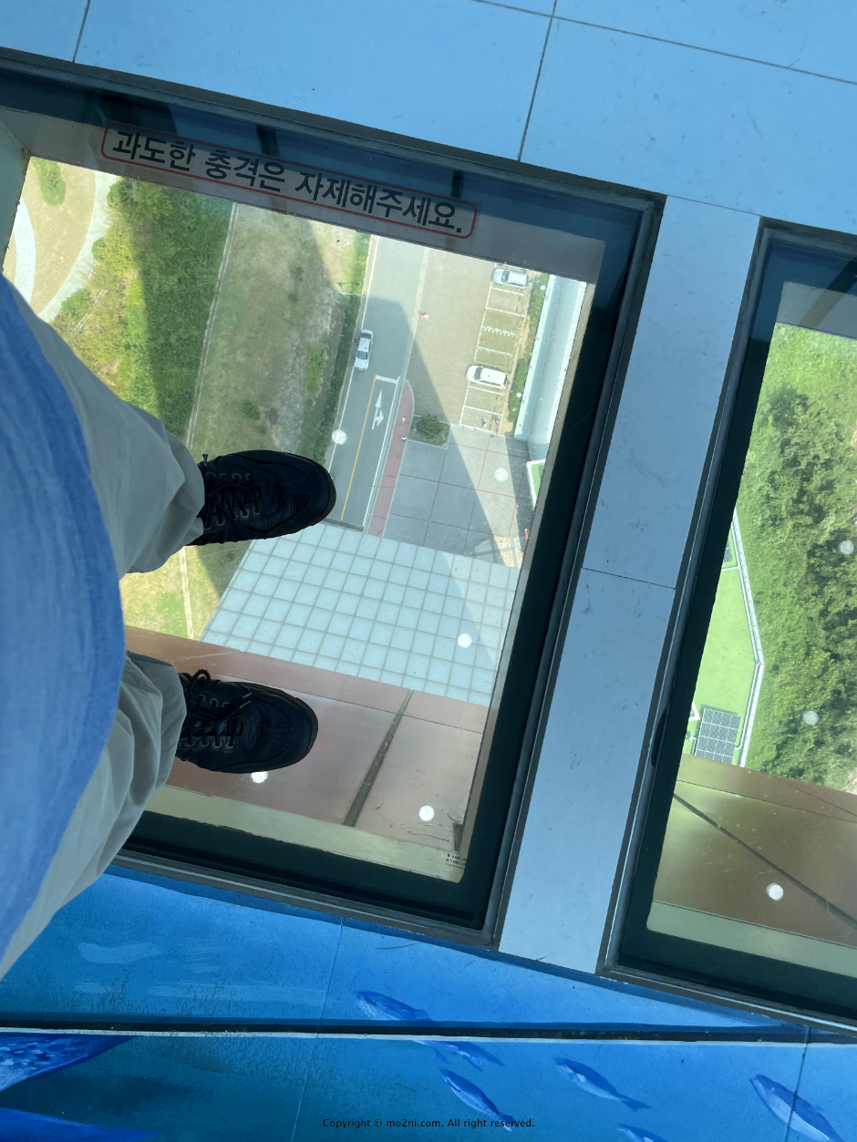 아래가 내려다 보이는 투명 발판이 있는데,