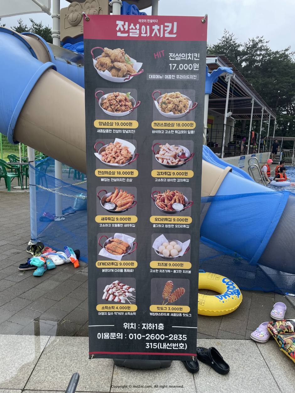 수영장 안에서는 치킨을 시켜 먹을 수 있었는데요, 전 오다리 튀킴이 가장 좋았습니다.